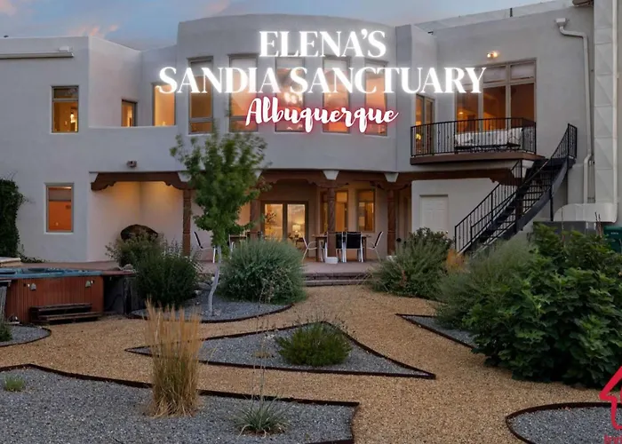 The 4-bedroom Elena'S Sandia Sanctuary - An Irvie Home features mountain views as well as a location just a minute's drive from Cliff's Amusement Park. Located about a 10-minute ride from Vista Del Norte Shopping Center, the villa provides Wi-Fi and parking.
